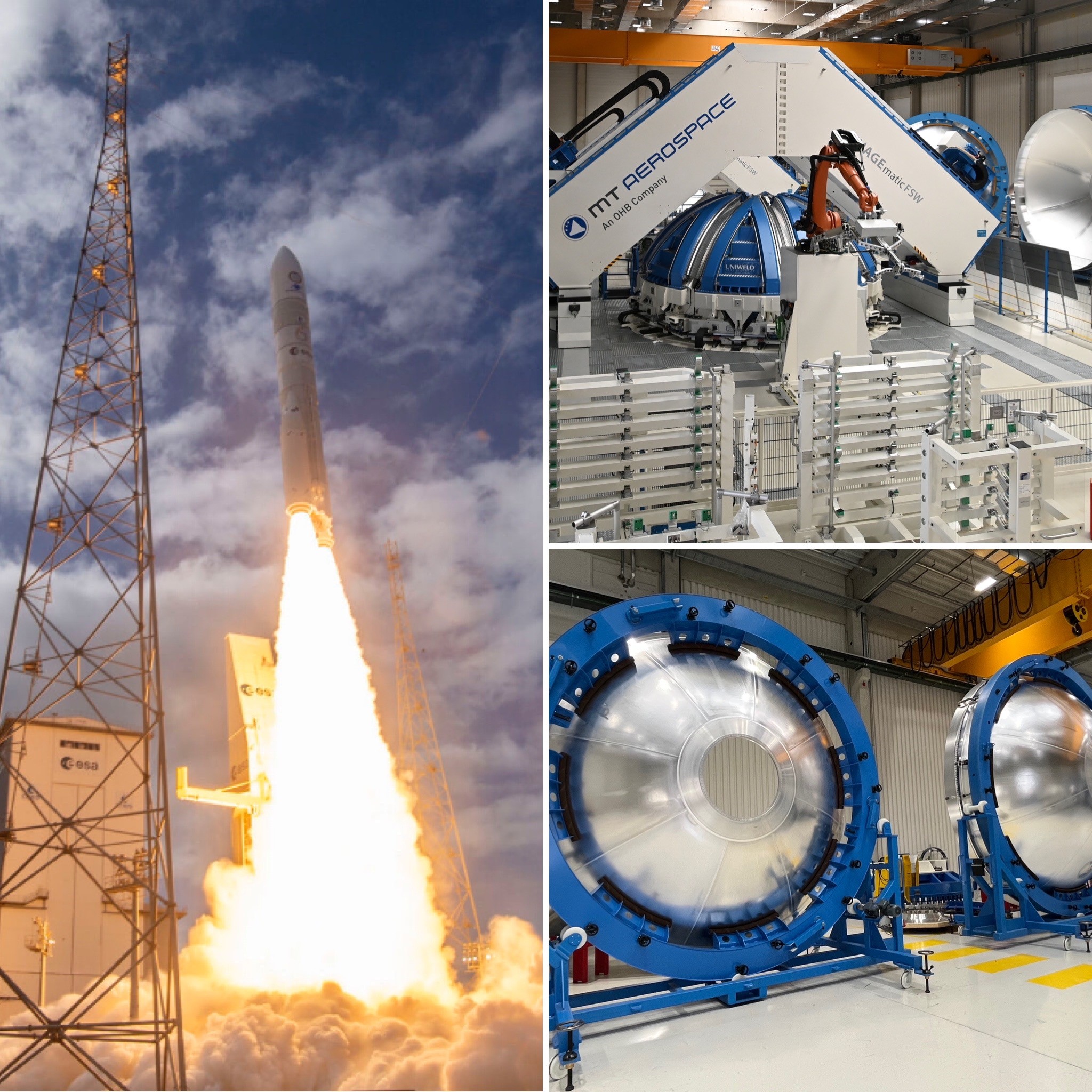 Der erfolgreiche Erststart der europäischen Ariane 6 Rakete ist für MT Aerospace ein Meilenstein in der Unternehmensgeschichte. Als größter deutscher Zulieferer verantwortet MT Aerospace die Entwicklung, Design und Fertigung der metallischen Strukturbauteile des neuen europäischen Trägers. Die Fertigung der Tank- und Strukturbauteile für die Ober- und Hauptstufe sind ein signifikanter Produktionsanteil des Augsburger Luft- und Raumfahrtunternehmens und repräsentieren einen Arbeitsanteil von ca. 10% am Gesamtträger. MT Aerospace verantwortet maßgeblich mehrere Innovationen zur Leistungssteigerung und Kostensenkung des europäischen Launchers. Hierzu zählen neue Fertigungstechnologien wie die Einführung von Kugelstrahlen unter Nutzung von KI-Prozessen zur Umformung von Bauteilen sowie der Einsatz von Aluminium Lithium als Werkstoff der neuen Trägerrakete.